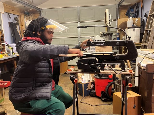 CJ using the coping saw